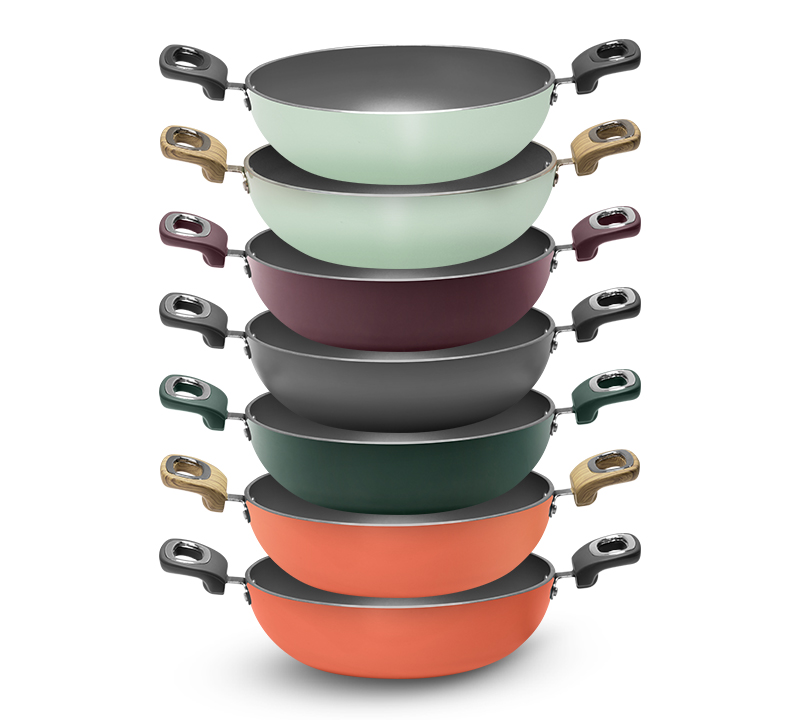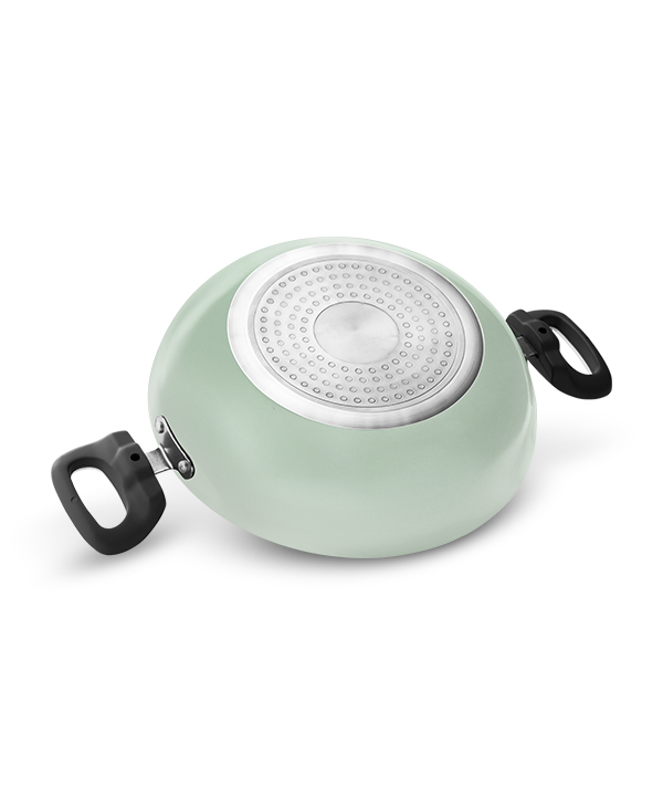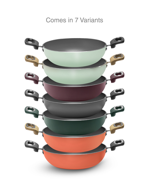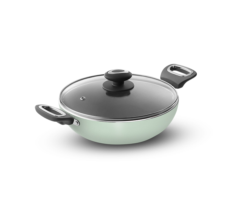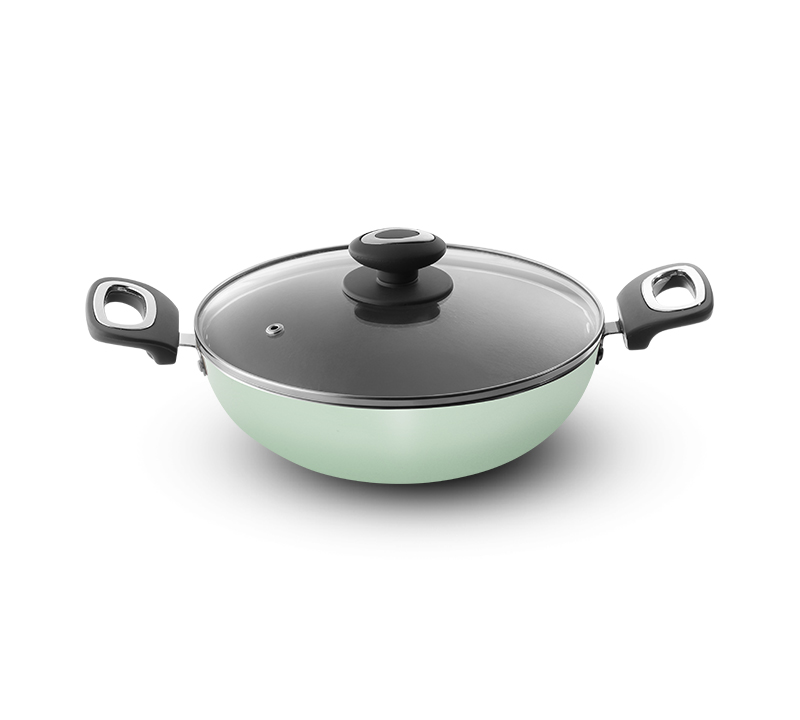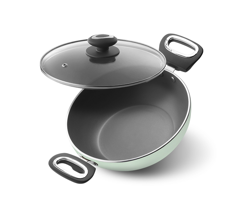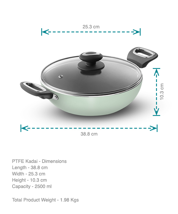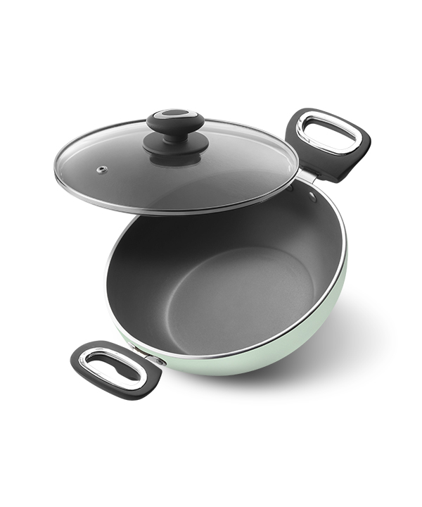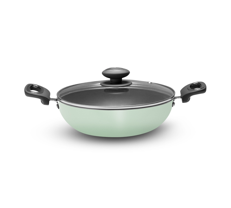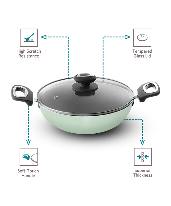 PTFE Ceramic Reinforced Kadai with Lid 24 cm - Winter Mint - Grey Handle